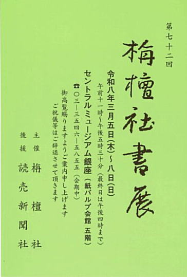- 2026年02月05日<開催案内> 第72回 栴檀社書展の開催案内を掲載しました。